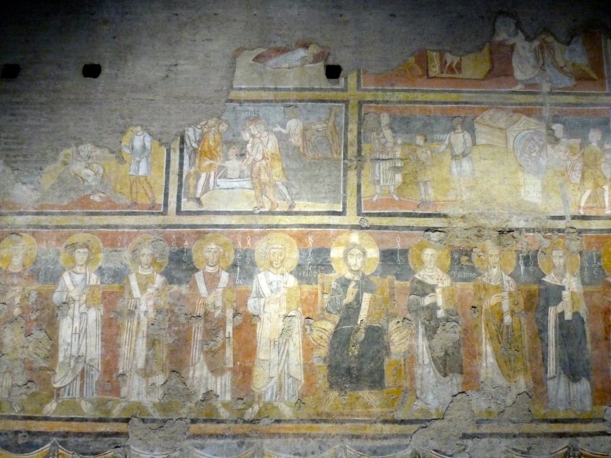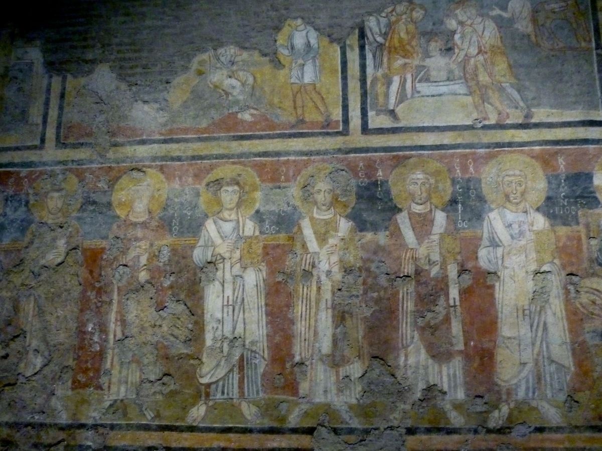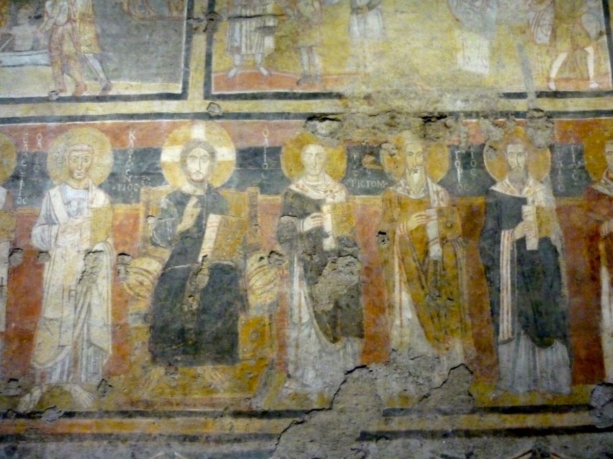 — à ceci près que les fresques de Santa Maria Antiqua m’ont ému plus que le reste, dans leur profonde délicatesse, dans l’humanité toute sensible des personnages représentés, dont le regard paraît se poser sur le spectateur par-delà le temps qui a dégradé contours et coloris de leur pâle image.)