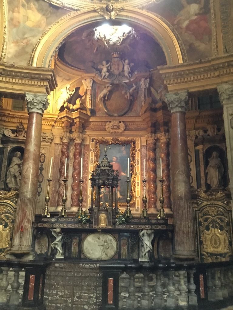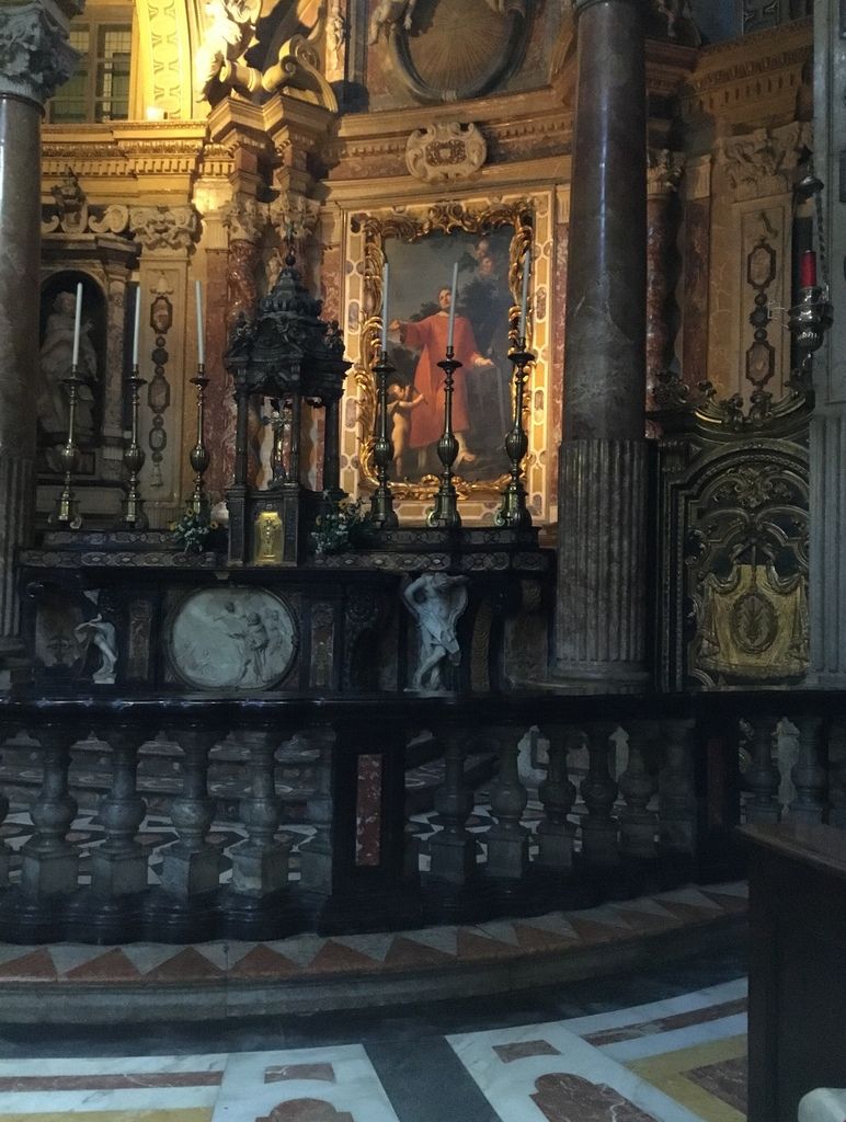 Le loisir m’est donné encore de visiter San Lorenzo dei Teatini ensuite, dont je n’ai pas voulu perturber la messe le matin — mais que j’avais photographiée de l’extérieur, étonné bien sûr que l’on y pénètre non par un porche mais par une porte comparable à celle des autres immeubles de la piazza Castello.