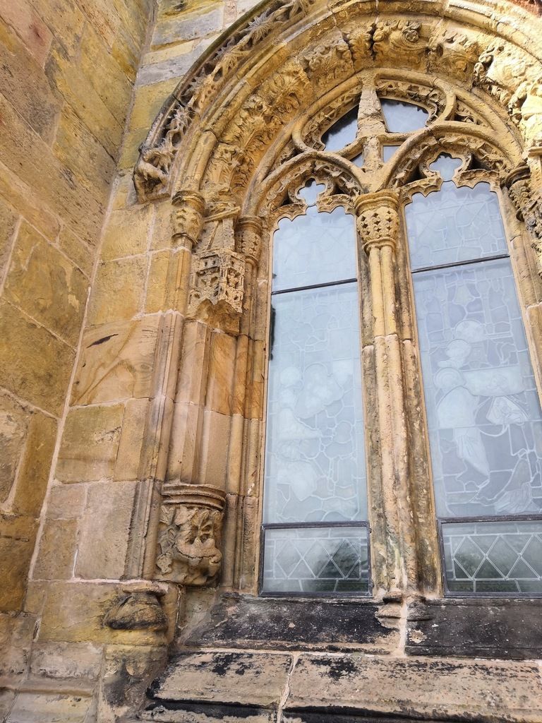 L’endroit, très petit, est plein comme un œuf. Mes yeux jettent leur dévolu sur une magnifique colonne torse, dont j’apprendrai ensuite, en lisant le dépliant si gracieusement délivré en même temps que les 9 £ dont il faut s'acquitter pour la visite (sans doute pour consoler le touriste dépensier de ce qu'en Grande-Bretagne les musées sont gratuits), la légende qui lui est attachée : « Un apprenti-maçon, sous l’inspiration d’un rêve, aurait sculpté ce pilier en l’absence de son maître. Le maître-maçon de retour, fou de jalousie, tua son apprenti. »